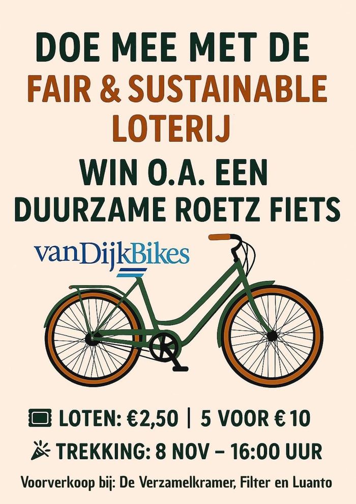 * Een lot kost 2,50 per stuk of 10 euro voor 5 loten en is verkrijgbaar op het Fair & Sustainable Festival, dat plaats vind op 7 en 8 november 2025